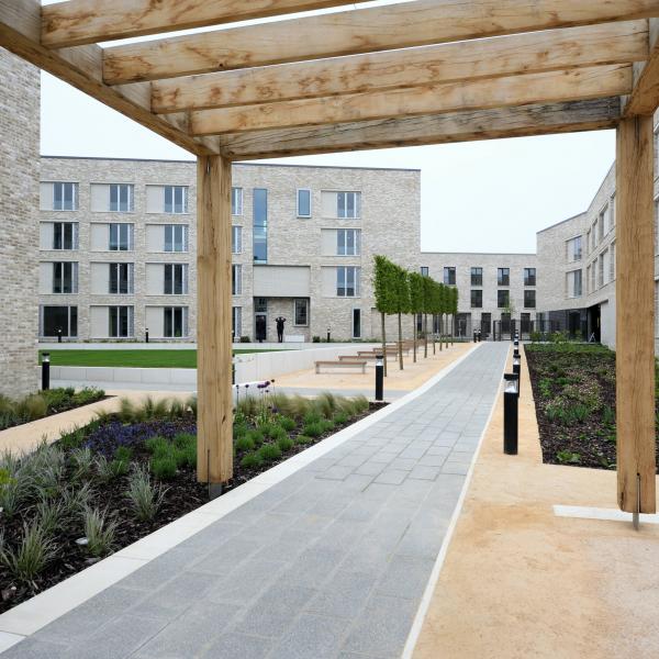 Swirles Court opened in September 2017 and is an integral part of the College, located close to the main site in the University’s urban-academic quarter at Eddington. Swirles Court contains 325 en-suite study-bedrooms, together with social and study spaces, all set around landscaped courtyards with card controlled access to create a secure environment.