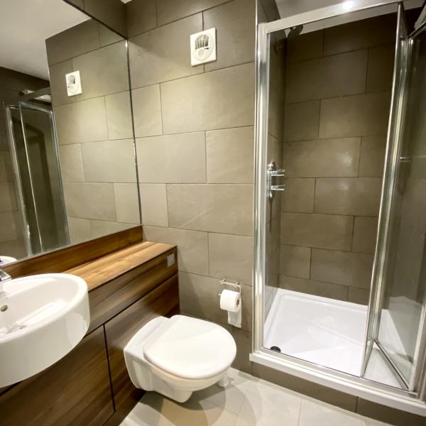 There is one room per block with a wet room, rather than a shower cubicle.