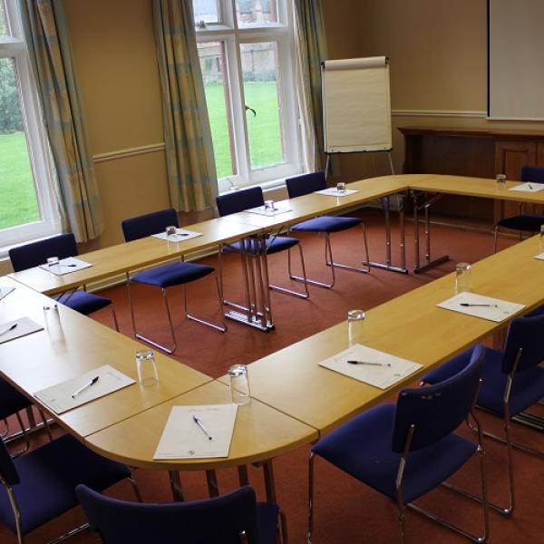 Despite its name, the Old JCR is a light and contemporary room, recently completely refurbished. Our only meeting room with spectacular views of the rose garden in Woodlands Court, the Old JCR works well when booked together with the Chapel Box Room or Old Kitchens, for split meetings and poster sessions, for example. As a conference room in its own right, the Old JCR offers an extensive suite of AV facilities, including a new interactive screen, and is ideal for smaller groups.