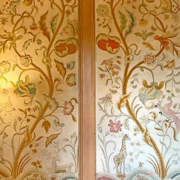 Located right next to the Lodge, the beauty of the Reception Room has to be seen to be appreciated with its floor-to ceiling tapestries depicting a variety of flora and fauna and created by Julia, Lady Carew, in 1908. The room also features a wood-panelled fireplace area with an imposing portrait of Lady Carew herself and is lit by elegant chandeliers.