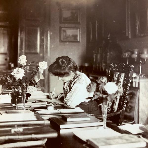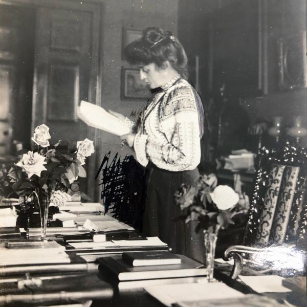 This year’s Roll of Alumni Weekend Library Talk speaker was Lucy Brownson, a PhD Candidate at the University of Sheffield working on “Archive as practice, space and identity at Chatsworth. Part of her research includes Eugénie Sellers Strong, whose personal papers are in Girton’s archive.
