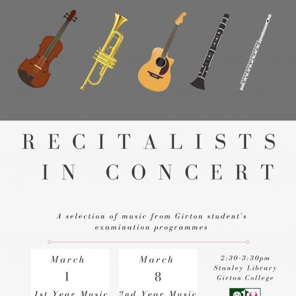 Girton College Music Society (GCMS) organises much of the music making in college. This takes many forms, ranging from the series of weekly Sunday afternoon recitals (given by both students and visiting professionals), and termly orchestral concerts, through to jazz evenings and other more informal occasions.